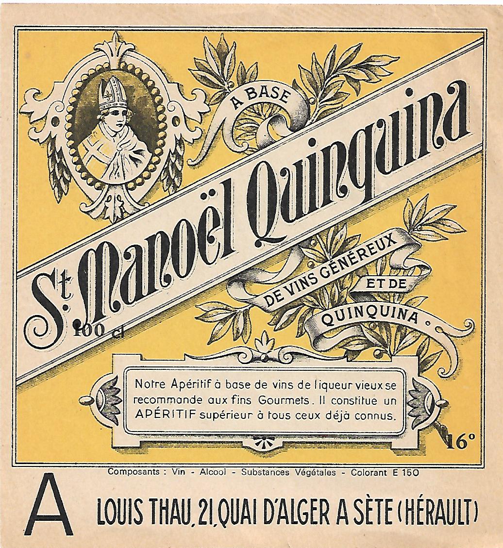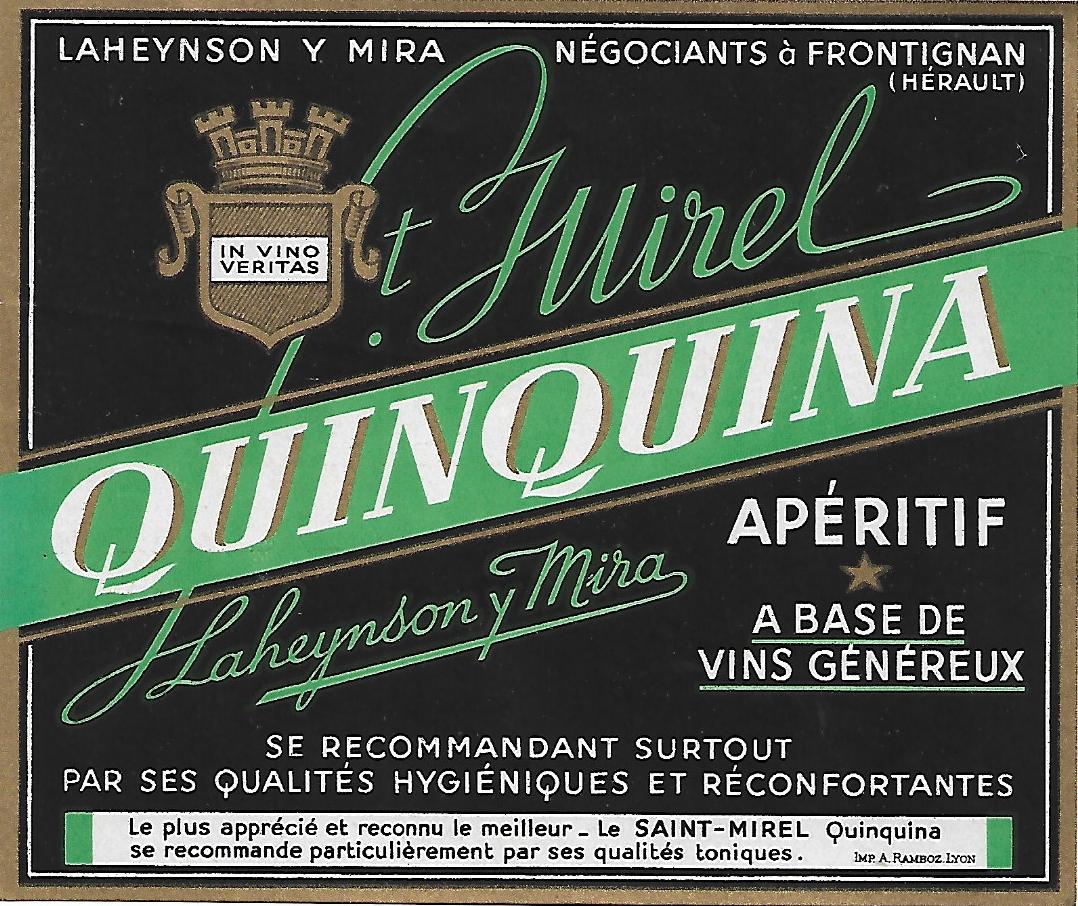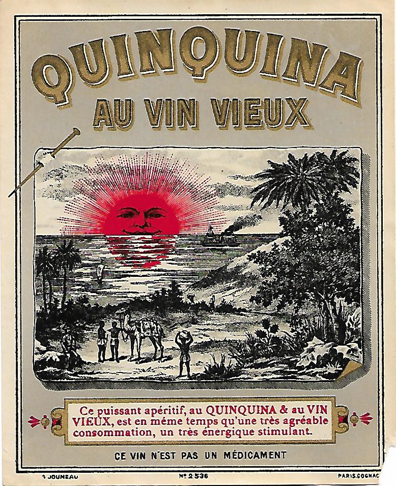 Ces étiquettes sont généreuses par leur taille, leur couleur mais également par le produit vendu pour ses biens faits. Le Quinquina est un vin apéritif aromatisé de diverses plantes dont traditionnellement de l'écorce de quinquina qui contient de la quinine. Cinchola est le nom botanique du quinquina, petit arbre originaire des versants des Andes du Nord. Les vins apéritifs à base de quinquina étaient très tendance jusqu’aux années 1950, surtout qu’il suffisait de faire macérer des écorces de quinquina dans du vin et de l’alcool auquel on pouvait ajouter d’autres arômes, donc très facile à préparer. Ses propriétés toniques, fortifiantes, apéritives et fébrifuges étaient mises en avant y compris dans la publicité, le transformant en une sorte de vin-médicament destiné également aux enfants anémiés. .