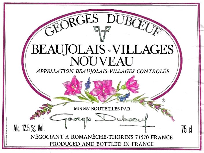 Dans les années cinquante suite à la mévente de son Pouilly-Fuissé, ce fils, petit-fils et arrière-petit-fils de vigneron enfourcha sa bicyclette et partit à la rencontre des restaurateurs de la région vendre le vin élaboré par son frère. Paul Blanc, l'un des chefs français les plus en vue à l'époque, sera l'un des premiers à lui acheter son vin blanc…. et ne tarde pas à lui demander du rouge. N’en produisant pas, ce commercial hors pair sillonne alors le vignoble pour sélectionner les meilleurs crus. Ce fut rapidement la notoriété, créant même un groupement de producteur. Il entame alors une carrière de négociant et exporte très vite vers les Etats Unis et l’Angleterre. Devenant incontournable, à coups de marketing et d’innovation, il brevète des formes de bouteilles pour donner une identité à sa marque et fait appel à l’artiste Pierre Albuisson qui crée une série fleurie pour ses étiquettes, révolutionnant quelque peu le style traditionnel bourguignon. Par la suite de nombreux dessinateurs décoreront ses bouteilles, quelques exemples figurent sur cette page, et, dorénavant les artistes se succèdent au fil des années. Connu comme le pionnier du vin nouveau, il l’est également dans l’oenotourisme en achetant la gare Romanèche-Thorins pour y installer « Le Hameau du vin », un musée ludique et vivant dédié à la vigne et à l’histoire viticole du Beaujolais. En 2018, il confie son entreprise à son fils Franck Duboeuf, la génération suitvante étant représentée par son petit fils Adrien Dubœuf-Lacombe. Georges Duboeuf est décédé le 4 janvier 2020.